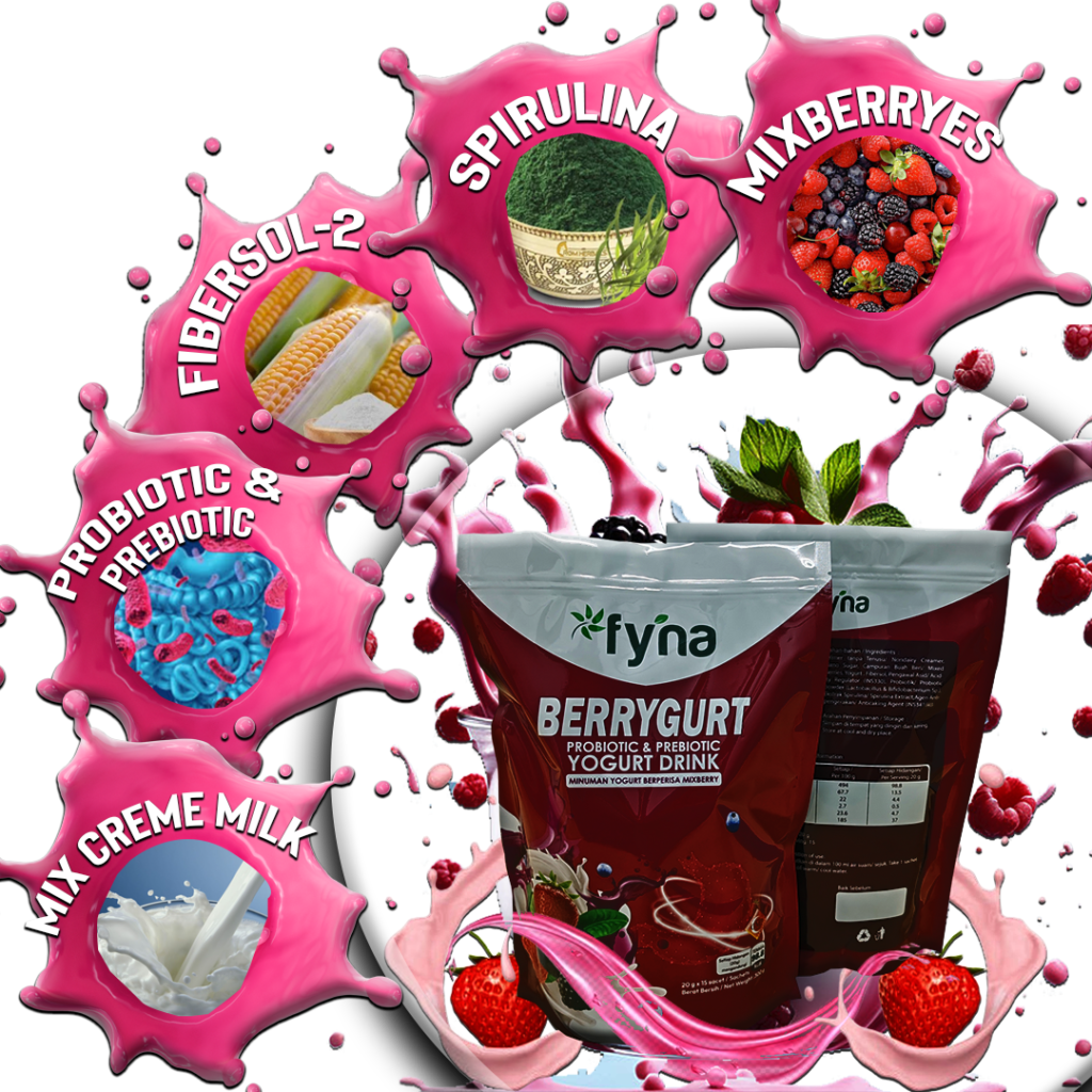 BERRYGURT adalah minuman yogurt yang istimewa kerana diformulasikan bersama SPIRULINA.