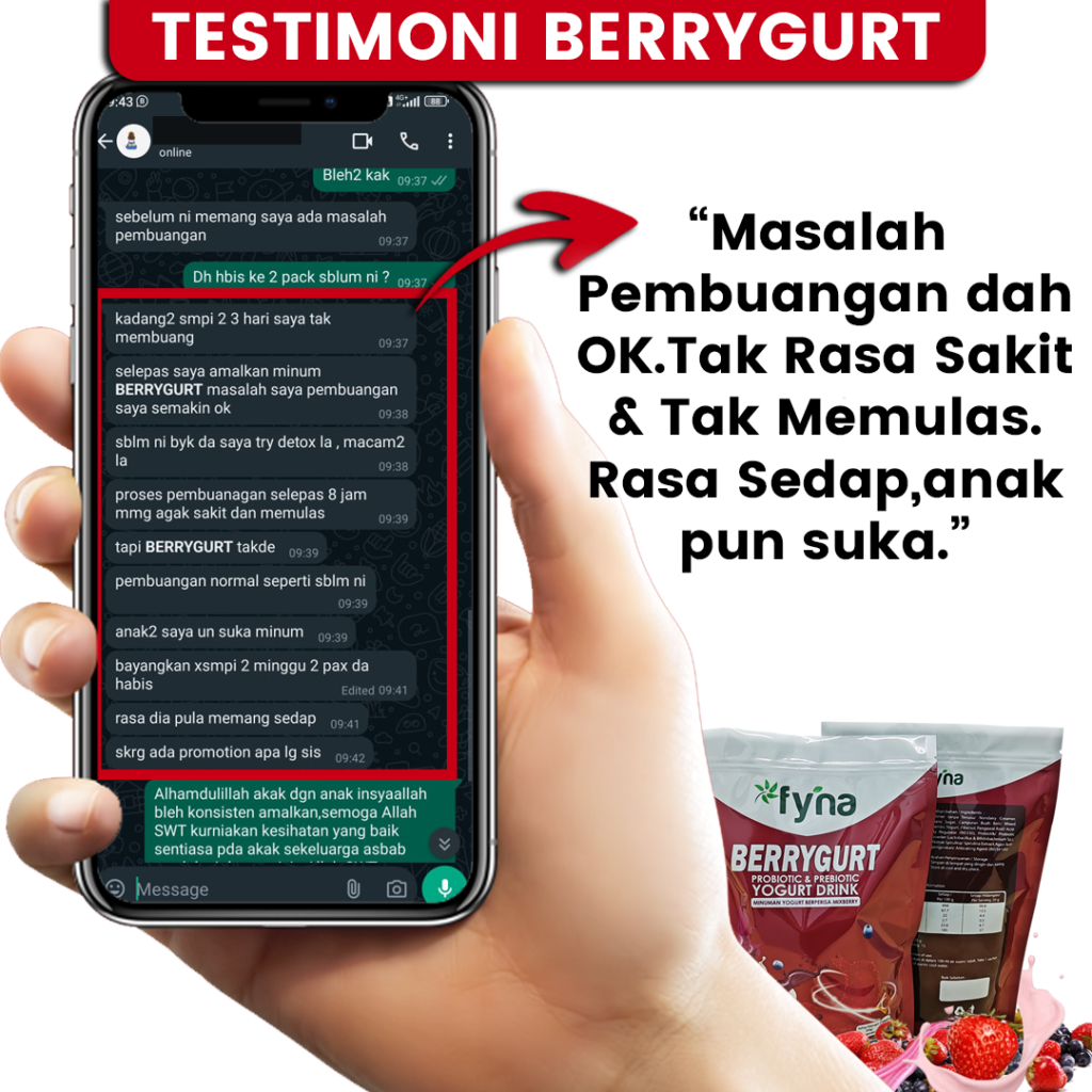 Antara Testimoni dari pelanggan yang telah mencuba minuman probiotik + prebiotik Berrygurt